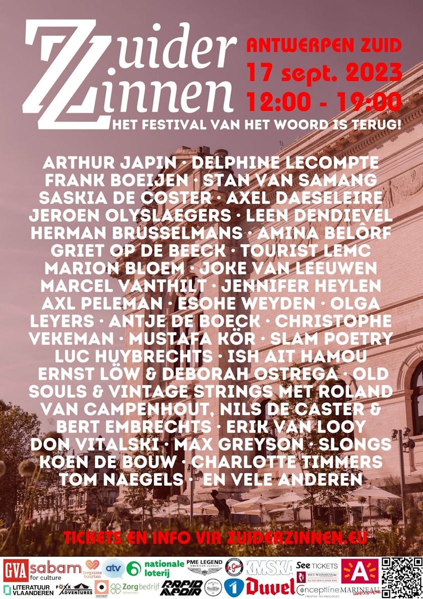 ZuiderZinnen, het Festival van het Woord, dat in het verleden plaatsvond op het Antwerpse Zuid, maakt na vele jaren pauze een doorstart. En wat voor één!