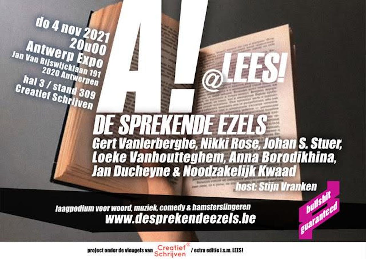 Op het boekenfestival LEES! palmen De Sprekende Ezels de stand van Creatief Schrijven vzw in. De balkende gasten zijn: