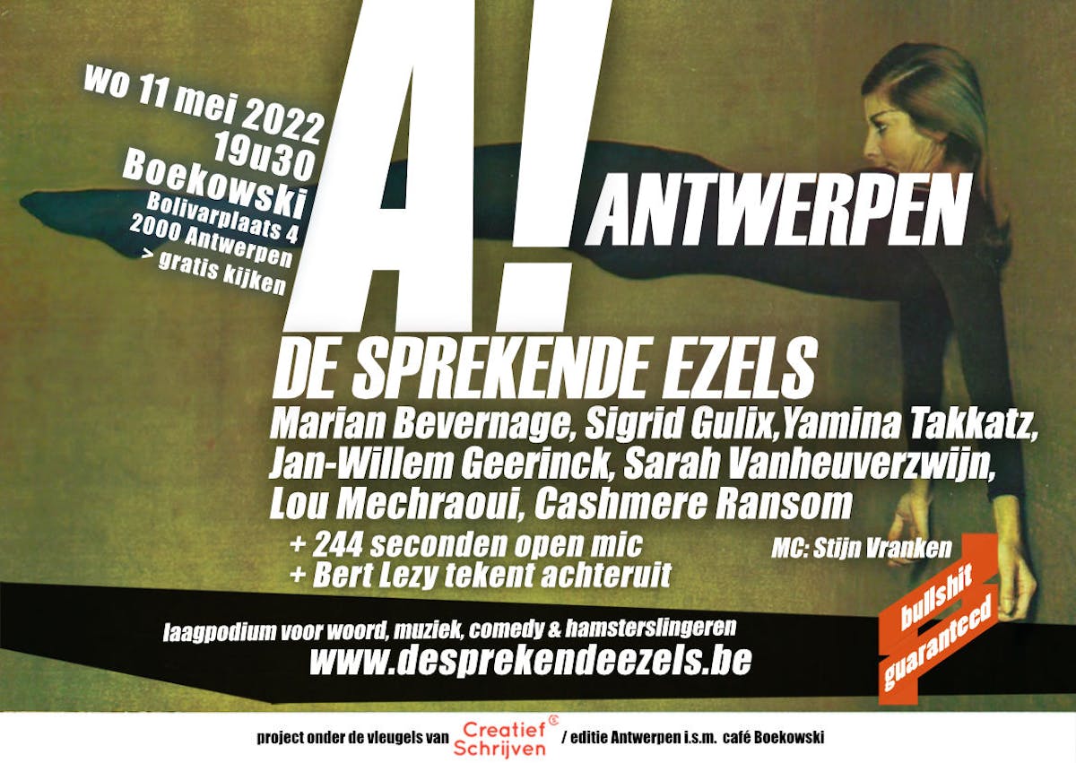 De Sprekende Ezels is ons laagpodium voor woord, muziek, comedy, hamerslingeren, enz. Je ontdekt er kersvers en gevestigd talent.