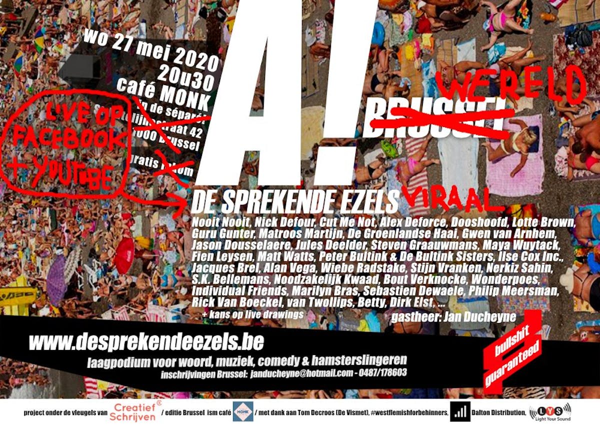 Live te volgen en te becommentariëren op de Facebookpagina van De Sprekende Ezels en van Creatief Schrijven vzw.