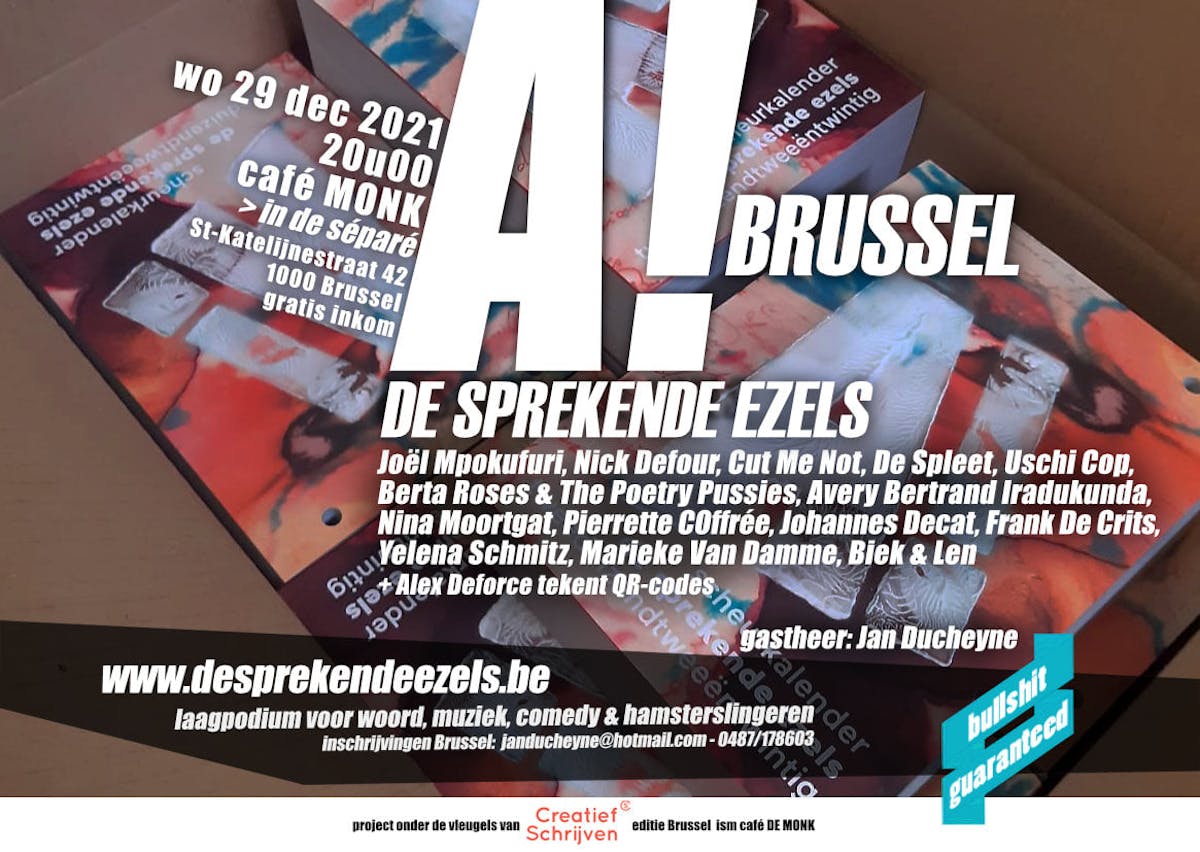 Met: Joël Mpokufuri, Nick Defour, Cut Me Not, De Spleet, Uschi Cop, Berta Roses & The Poetry Pussies, Avery Bertrand Iradukunda, Nina Moortgat, Pierrette COffrée, Johannes Decat, Frank De Crits, Yelena Schmitz, Marieke Van Damme, Biek&Len + Alex Deforce tekent QR-codes.