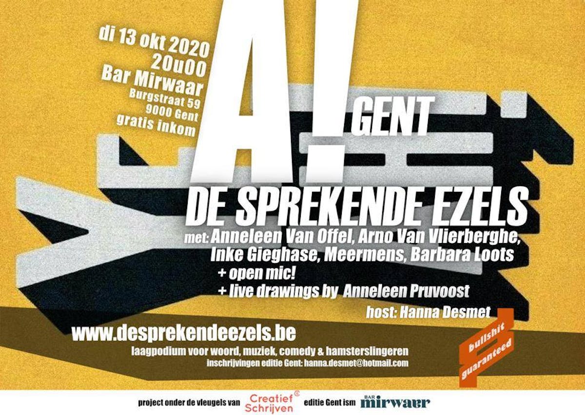Hoera! Een nieuw seizoen van de Sprekende Ezels in Gent gaat van start! Speciaal voor u: een schitterende line-up. En voor het eerst ook een kans om het podium in te palmen.