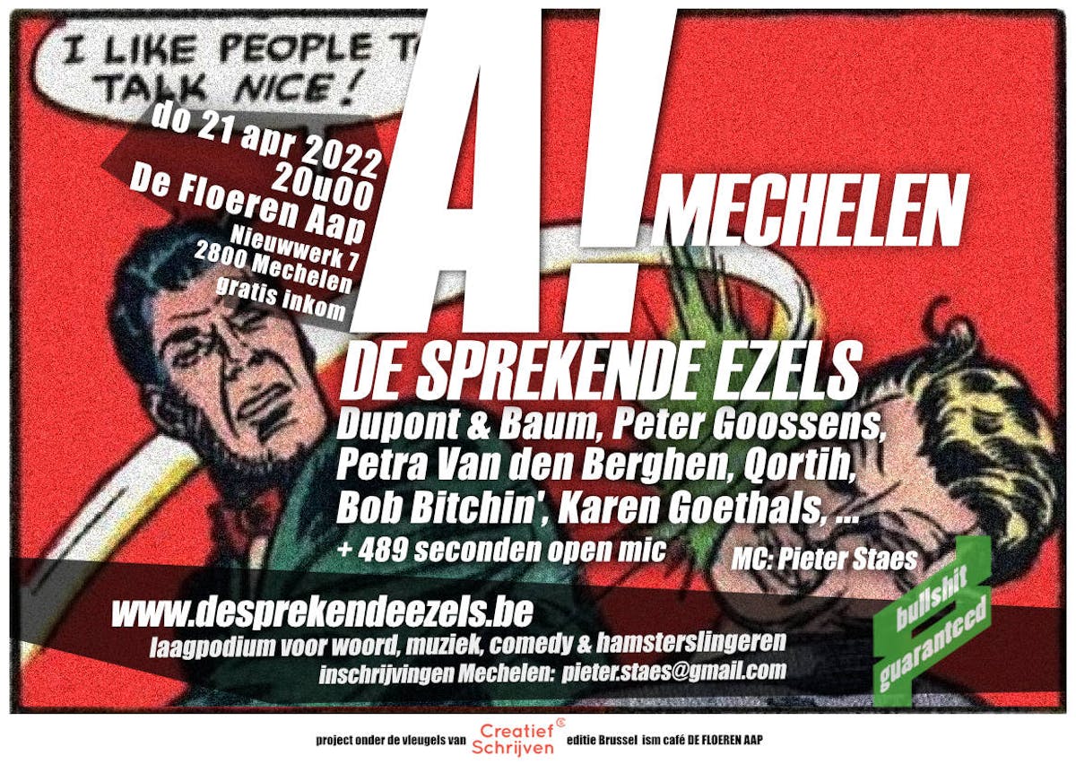 De Sprekende Ezels is ons laagpodium voor woord, muziek, comedy, hamerslingeren, enz. Je ontdekt er kersvers en gevestigd talent.