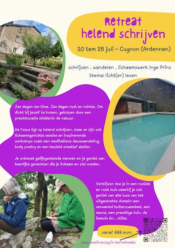 Misschien herken je het wel ... je weet dat schrijven je deugd doet, maar het lukt je moeilijk om het in te bedden in je dagelijkse leven. Of je schrijft enkel wanneer er iets gebeurde in je leven dat je angstig, verdrietig of kwaad maakte. Je wil ook wel eens over vroeger schrijven. Of over blije herinneringen. Of het schrijven gebruiken om stil te staan en je innerlijke wijsheid te ontdekken. Of misschien ben je wel op zoek naar inspiratie om over te schrijven? Naar boeiende opdrachten. Toffe dichtvormen. En als het ook nog even kan ook wel naar mensen die jouw passie voor taal en (helend) schrijven delen.  ​Dan is dit halfjaartraject helemaal iets voor jou! Een echt 🎁 voor jezelf!   VOORDELEN ☘️je maakt de opdrachten op je eigen tempo☘️je geeft het schrijven een plekje in je leven☘️je zet in op persoonlijke groei☘️je bent in contact met gelijkgezielden die net als jou houden van diepgang☘️je oefent in (eenvoudige) gedichten schrijven die je helpen om de essentie te 'pakken' van wat je schreef☘️je hoeft zelf geen schrijfopdrachten uit je hoed te toveren VOOR WIE  ✍️je houdt ervan om naar binnen te kijken✍️je 'hebt' iets met schrijven (je houdt/hield van dagboekschrijven, kan je emoties op papier weergeven [of wil daar graag in oefenen 😉])✍️je hebt zin in een half uurtje pure me-time om de twee weken✍️je komt graag uit je hoofd en in je gevoel✍️je brengt graag naar boven wat er diep in jou leeft ✍️je vindt het 'wijs' jezelf nog beter te leren kennen