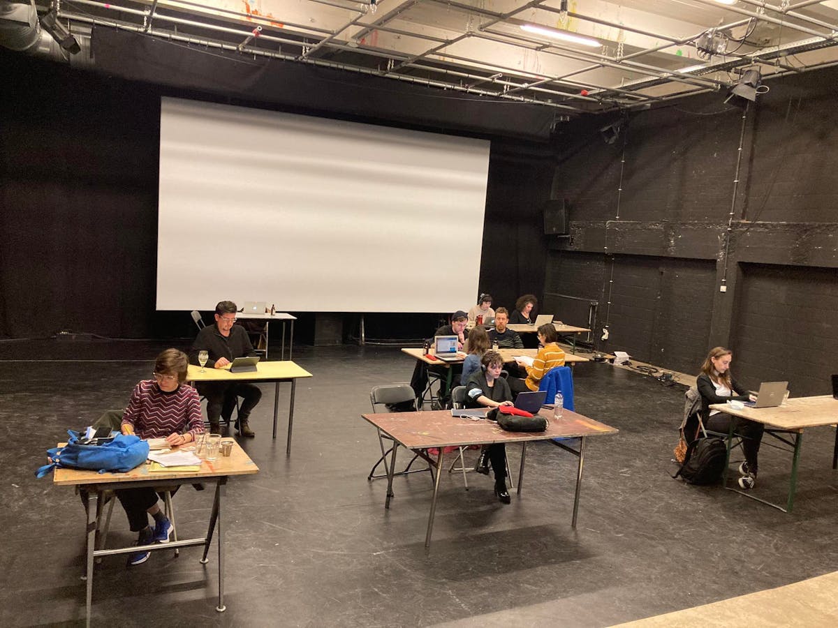 In stilte schrijven we met z'n allen, maar toch apart: een moment van gedeelde concentratie. Na afloop praten we na.