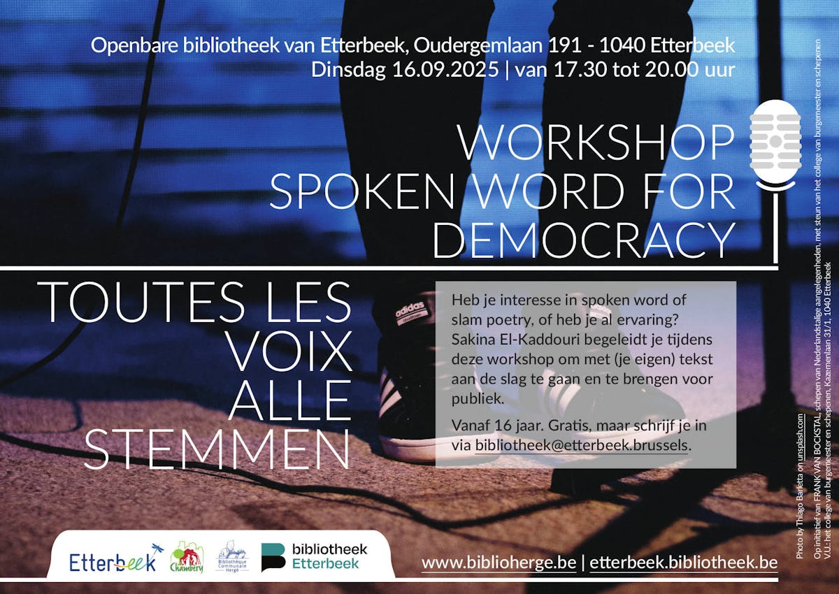De Nederlandstalige én de Franstalige bibliotheek in Etterbeek organiseren een Spoken Word- avond rond het thema democratie.