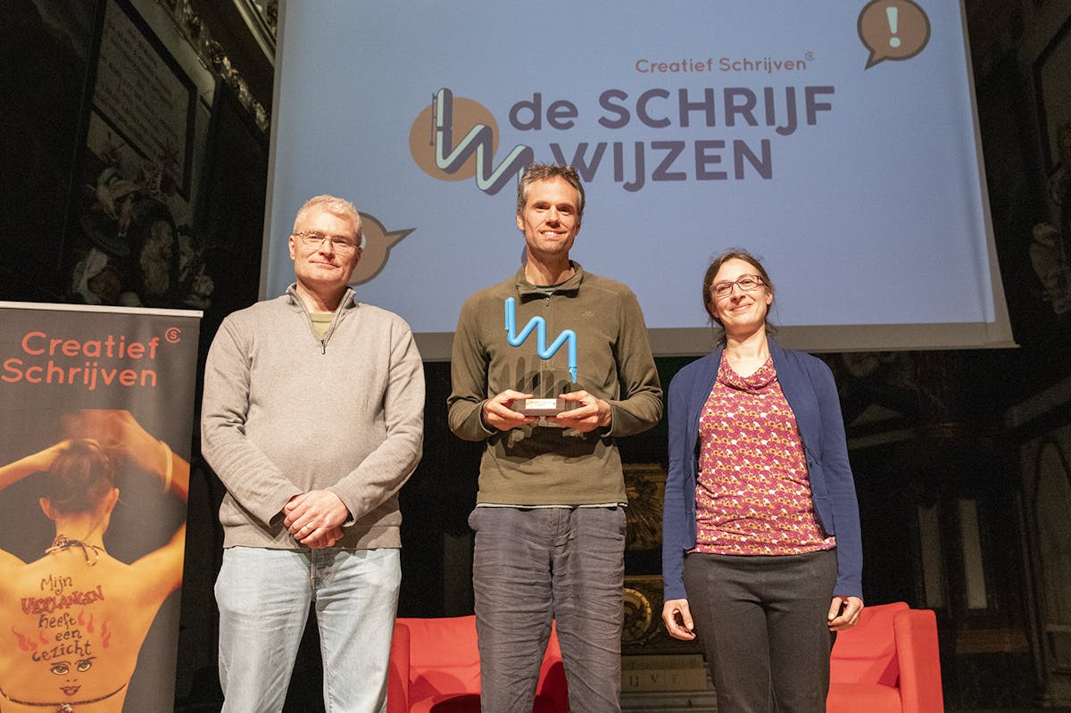 Nul fouten in de eerste dicteeronde, een achttien letters tellend woord gevonden en langst overeind gebleven in de afsluitende spellingbee: Maarten Bogaert uit Erpe-Mere mag zich de winnaar noemen van het dictee De Schrijfwijzen, dat op zaterdag 26 oktober plaatsvond in AMUZ, Antwerpen, een organisatie van Creatief Schrijven, VRT en de Vlaamse bibliotheken. De dicteetekst was een creatie van Christophe Vekeman.