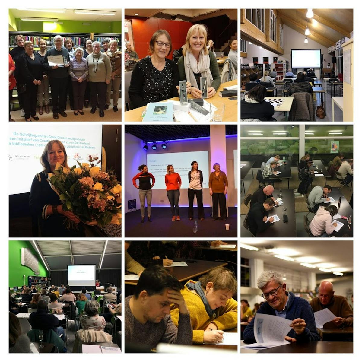 Van Oostende over Kortrijk, Mechelen en Leuven tot Tongeren openden op 6 december 100 bibliotheken hun deuren voor De Schrijfwijzen – Het Groot Dictee Heruitgevonden. Meer dan 3500 deelnemers zetten hun tanden in woorden als assessmentcenter, AI-ingenieurs en decolleté. Annika Cannaerts uit Borgerhout schreef het dictee. Zij won de wedstrijd ‘Verhaal voor dictee gezocht’ met een tekst over robot ‘Dolly’ die na de Derde Wereldoorlog als bibliothecaresse de plak zwaait.