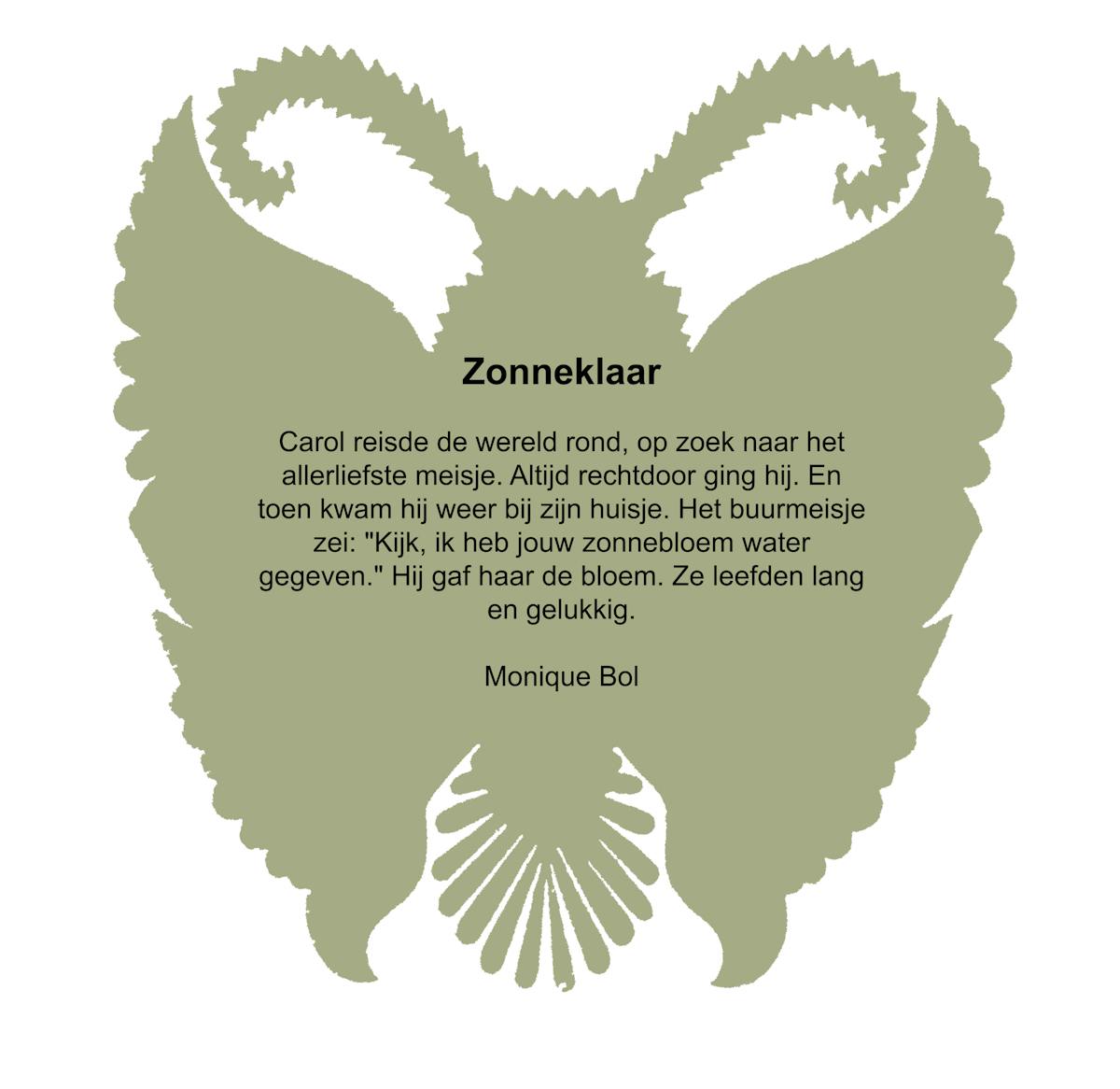 De jury over 'Zonneklaar' van Monique Bol: "Helder, eenvoudig, poëtisch, lieflijk, zeer toegankelijk voor alle leeftijden en dat in exact 43 woorden en volgens de klassieke opbouw van een sprookje. Het is een prachtige boodschap in tijden waarin we allemaal wat zorgzamer voor elkaar zouden mogen zijn en het geluk echt niet ver hoeven te gaan zoeken."