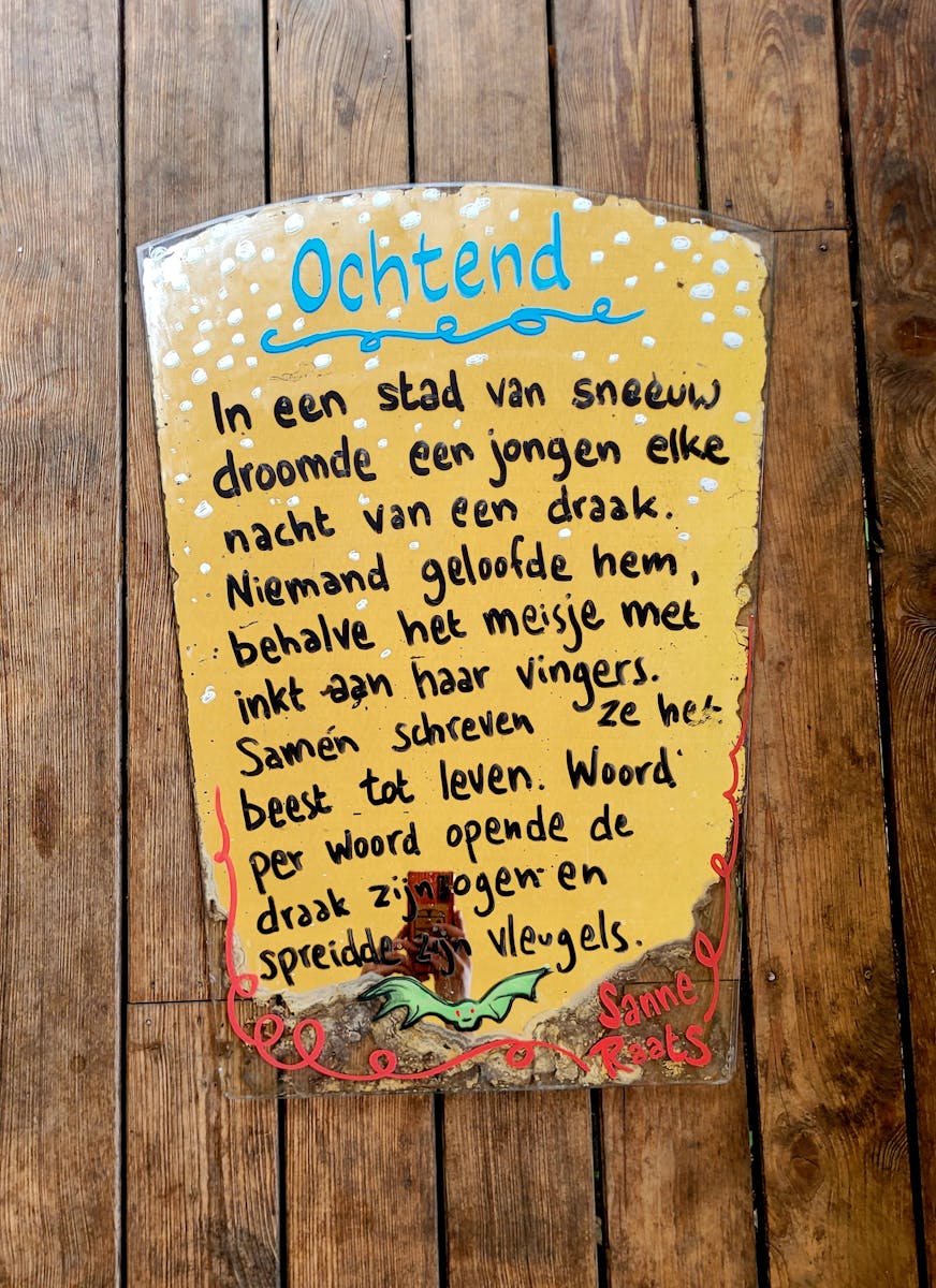 We stelden daar ook alle inzendingen tentoon die we ontvingen voor de wedstrijd 'Er was eens,... een sprookje in 43 woorden'. Deze prijkten alle 140 als insecten op grote banners.