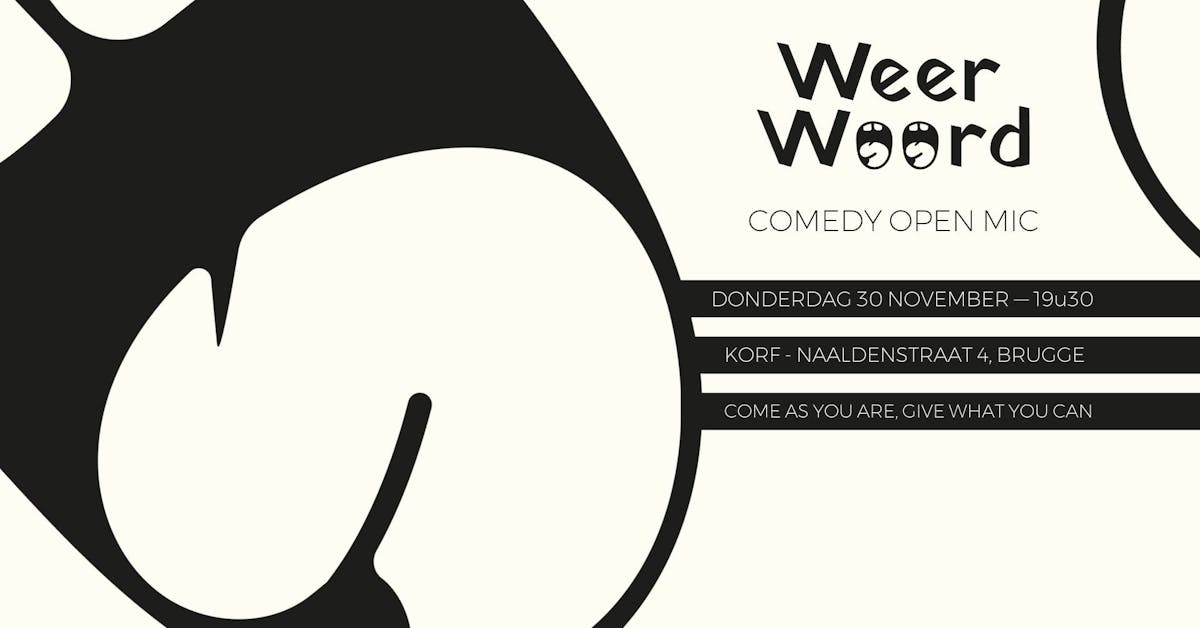 Inschrijven voor het open podium doe je door de avond zelf iemand van het WeerWoord-team aan te spreken voor de aanvang van de programmatie (20u!) Ze ontvangen je met open armen!