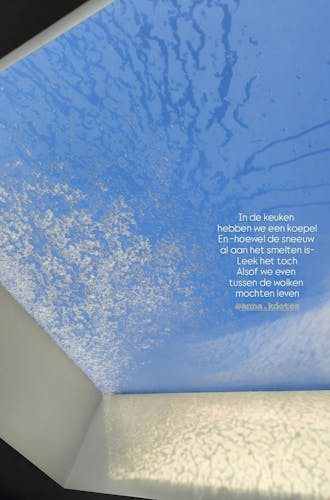 En dan plots komt er weer opening, even onverwachts als de sluiting.Hij kijkt naar haar en de liefde loopt over.Nog voor hij zegt hoe graag hij haar ziet heeft ze die woorden al gevoeld.De druk gaat van haar borst en ze huilt vanbinnen.De weken die volgen zitten vol van die echte liefde afgewisseld met afstand. Zij heeft het niet door en reageert soms te intens op beide. Zij wil genieten, vooruit gaan, leven, niet teveel moeten, niet teveel nadenken.Vertrouwen op de liefde en elkaar. Ze gaan regelmatig wandelen en eten. Ze liggen ook af en toe wat langer in bed zacht te praten. Hij beschrijft de verre toekomst, maar maakt ook plannen voor de dichtbije.Zij zit overal in die toekomst en de kinderen ook, dus ze is gerust.