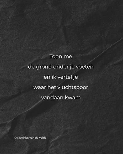 Versnipperd herboren woorden worden geboden, weg naar in of van taal, achterhaald gebaar haalt verassend uit, het einde van een begin, verzonnen gebeden in eer en geweten tot ik de volgende spelregels tover uit een ongekende hoge hoed, wil je meer of was een buiging genoeg?